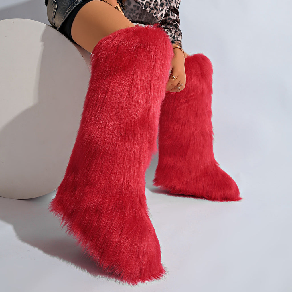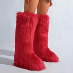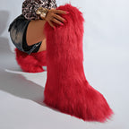 IPPEUM Red Mongolian Fur Boots Knee High Boots Shoes Winter Plus Size 46